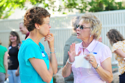 my aunt ruth and aunt susan in a deep conversation about how i pulled this off for only $7 a plate. (i kid, but that dollar amount is real folks)
